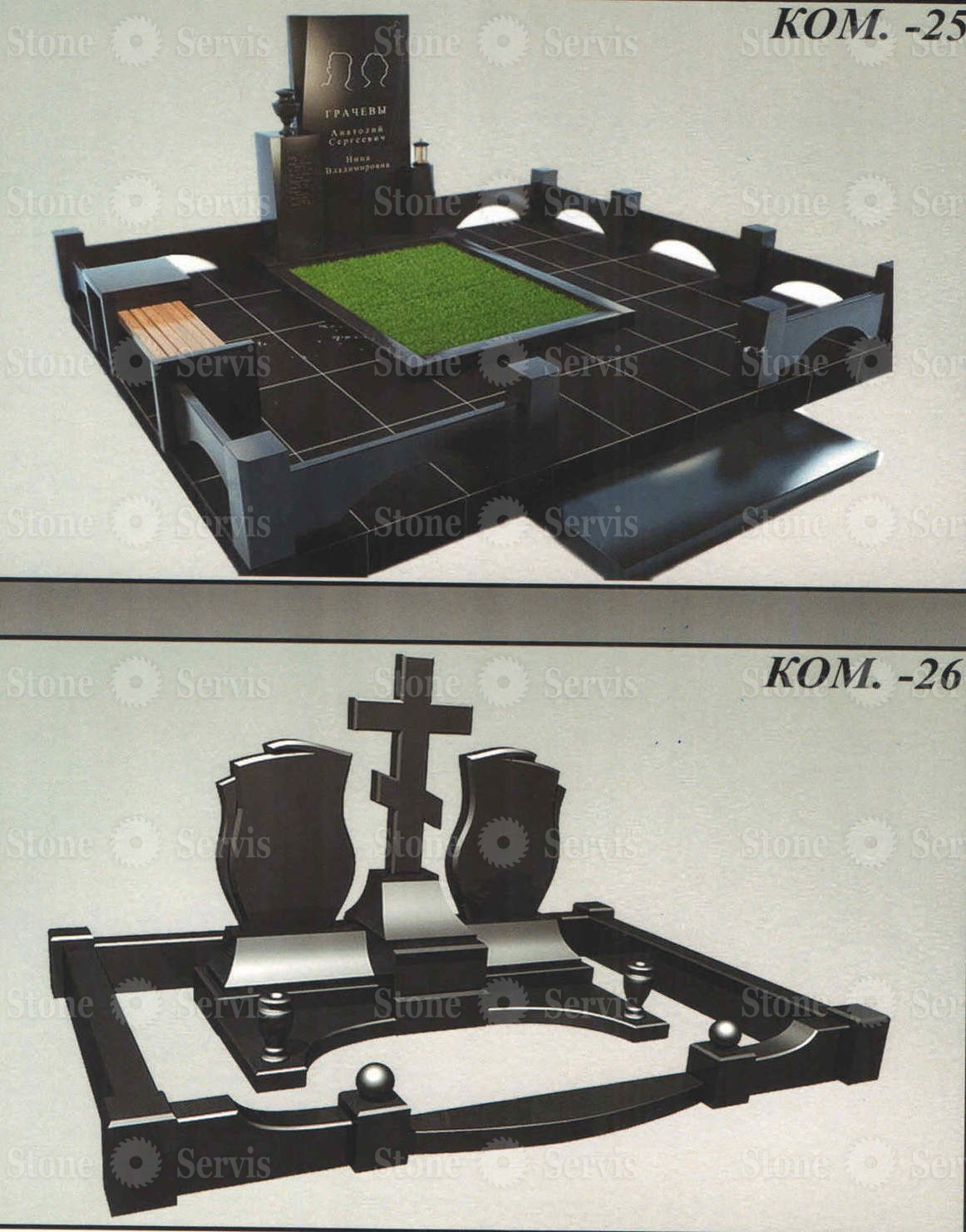 Компания «Стоун Сервис» осуществляет полный цикл работ: от консультации и разработки проекта до изготовления и установки мемориального комплекса на месте захоронения. Мы используем только сертифицированные материалы и профессиональное оборудование, что гарантирует высокое качество изготовления и долговечность изделий. Также вы можете заказать дополнительные услуги — гравировку памятных надписей, художественную резьбу, инкрустацию и другие декоративные элементы.